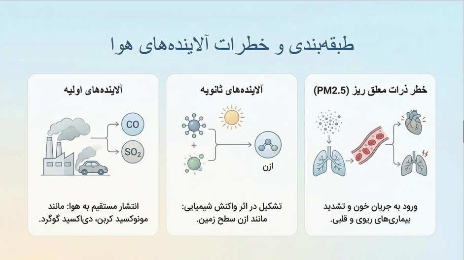 این پاورپوینت یک ابزار آماده، دقیق و قابل ارائه برای دانشآموزانی است که باید موضوع «آلودگی هوا و سلامت انسان» را بهصورت علمی، منظم و قابل فهم ارائه کنند، بدون اینکه وقتشان صرف جمعآوری مطالب پراکنده از اینترنت شود. محتوا بهصورت مرحلهبهمرحله و آموزشی طراحی شده و شامل توضیح روشن مفاهیم، مثالهای قابل درک و ساختاری استاندارد برای ارائه کلاسی است.