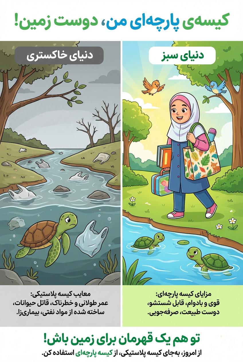 این انتخاب ساده اما هوشمندانه، فشار بر منابع نفتی (ماده اولیه تولید پلاستیک) را کاهش داده و حجم انبوه زباله در محلهای دفن را کم میکند. آموزش این فرهنگ در خانواده و جامعه، الهامبخش دیگران برای پیوستن به این جنبش سبز است. با هر بار خرید و رد کردن کیسه پلاستیکی، شما بهطور مستقیم از محیط زیست محافظت کرده و پیامی قدرتمند برای حمایت از تولید و مصرف پایدار ارسال میکنید. آینده زمین به انتخابهای امروز ما بستگی دارد.