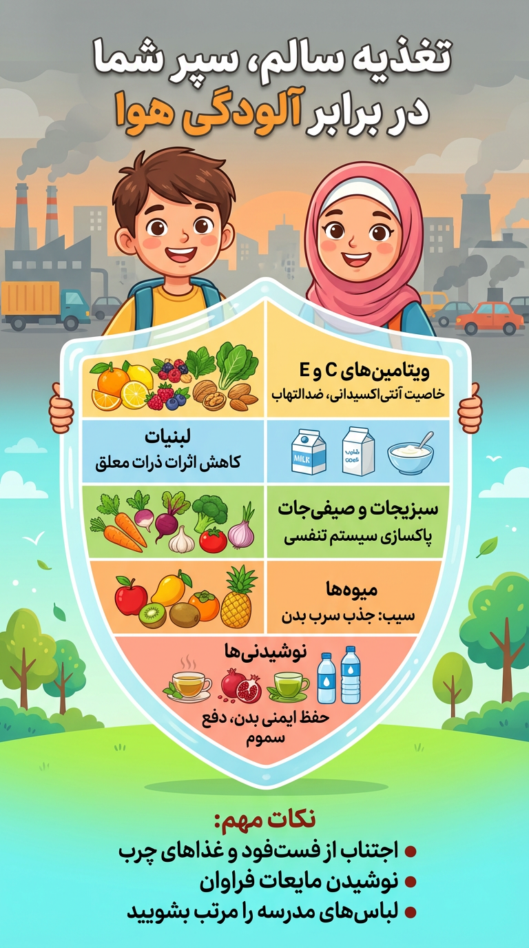 پوستر «تغذیه سالم، سپر شما در برابر آلودگی هوا»