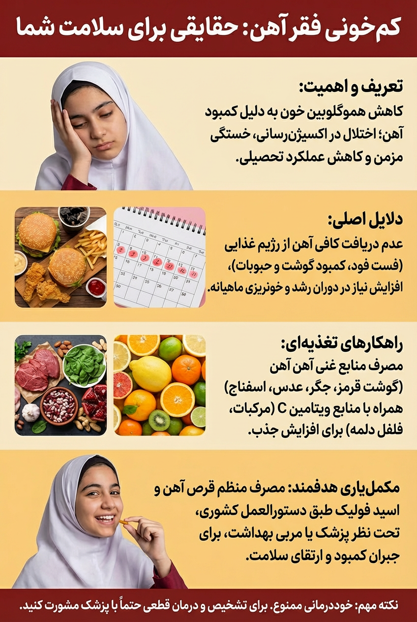 پوستر «کم خونی فقر آهن: حقایقی برای سلامت شما»