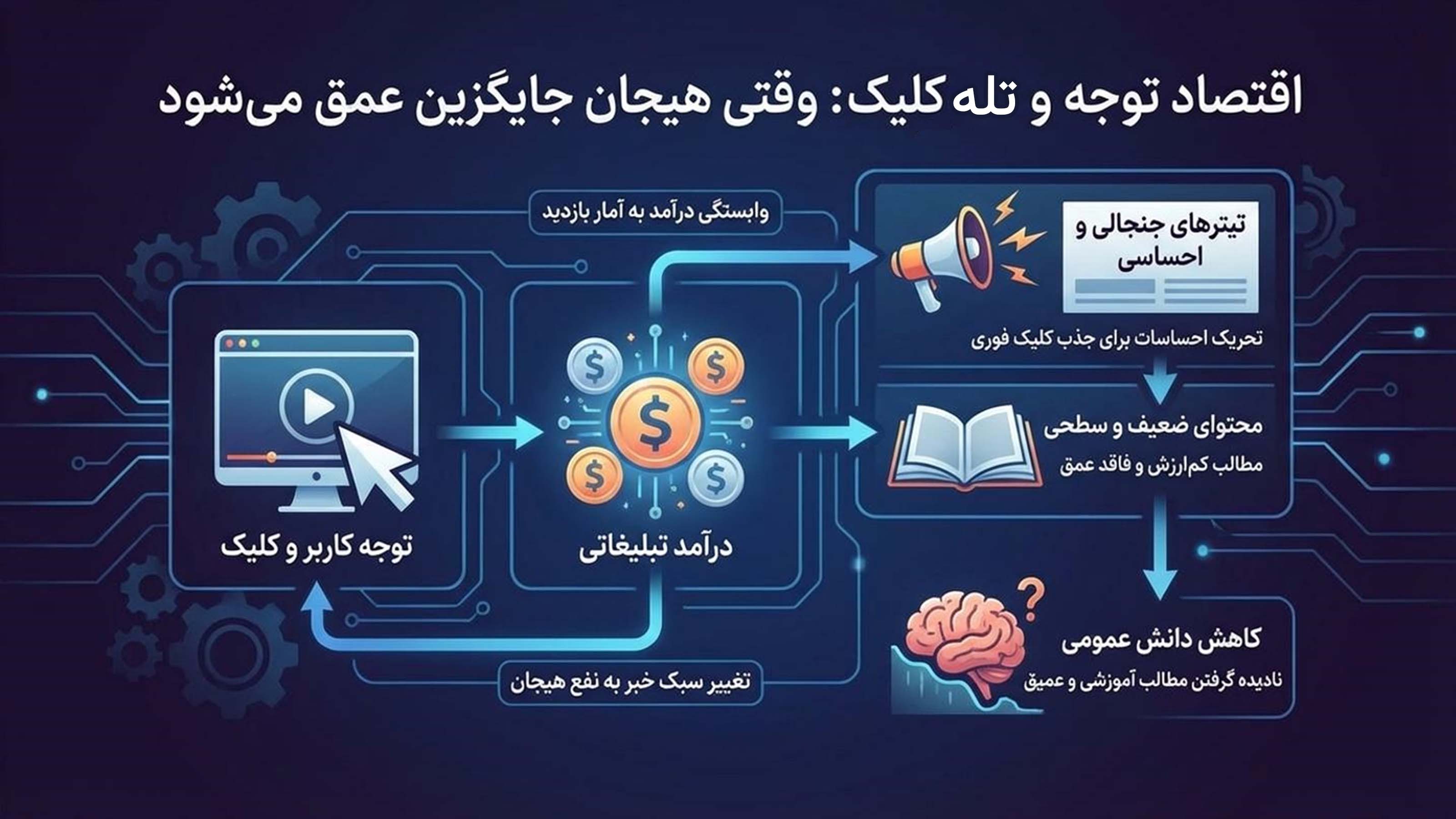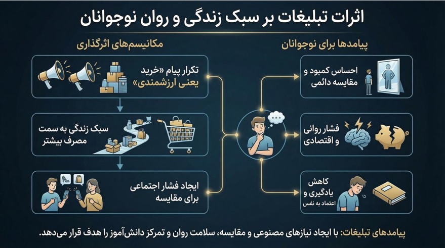 این تحقیق توضیح میدهد تبلیغات فقط معرفی کالا نیست و میتواند مسیر رسانهها را با قدرت مالی و اثرگذاری روانی هدایت کند. رسانهها برای ادامه فعالیت به درآمد نیاز دارند و تبلیغات یکی از اصلیترین منابع پول آنهاست. همین وابستگی باعث میشود رسانه گاهی در انتخاب موضوعات، تیترها و نوع پوشش خبرها محتاط شود یا به سمت محتوای پربازدیدتر برود. در فضای دیجیتال، اقتصاد توجه و تبلیغات هدفمند باعث میشود هر کاربر پیامها و پیشنهادهای متفاوتی ببیند و بیشتر درگیر محتوا شود. تبلیغات میتواند از راههایی مثل رپورتاژ، جایگذاری محصول و محتوای همسان، مرز بین خبر و تبلیغ را کمرنگ کند. پیامدهای این روند شامل کاهش کیفیت محتوا، افزایش مصرفگرایی و آسیب به اعتماد عمومی است. راه مقابله، شفافیت رسانهها و افزایش سواد رسانهای مخاطب است. دانشآموز با پرسیدن سؤالهای درست، مقایسه منابع و تشخیص تبلیغ از خبر، کمتر فریب میخورد. این تحقیق همچنین کاربردهای موضوع در زندگی روزمره را نشان میدهد تا دانشآموز مخاطب فعال و آگاهتری باشد.